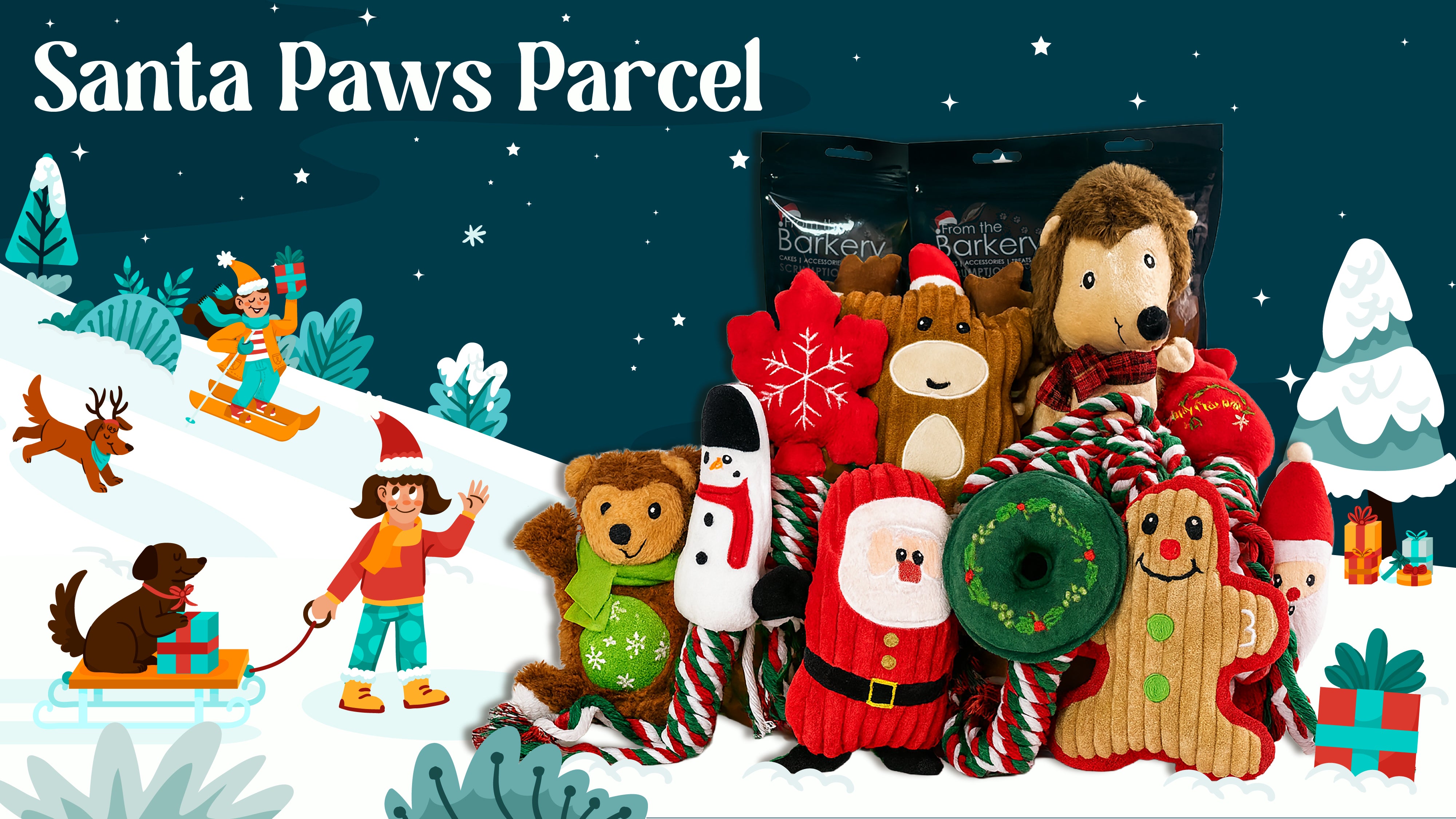 Perfect for playful pups and merry mischief-makers, this parcel is bursting with holiday cheer.